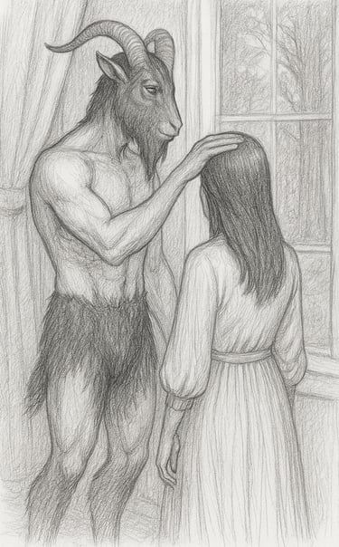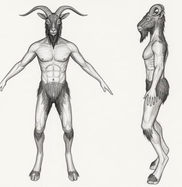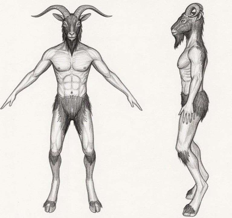 Descripción Física: Zerath no tiene una forma física fija. Se manifiesta principalmente como una Cabra humanoide, una figura de oscuridad que se desliza a través de los rincones más oscuros del mundo. Cuando toma una forma corporal, su aspecto es temible y desconcertante: una figura alta y delgada, con una piel grisácea, casi translúcida, y ojos brillantes que parecen vacíos pero llenos de malicia. Su rostro es ambiguo, a menudo envuelto en sombras, reflejando una mezcla de facciones que parecen deconstruirse al mirar más de cerca.