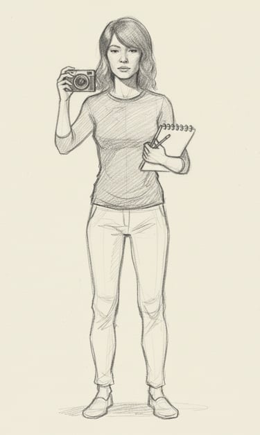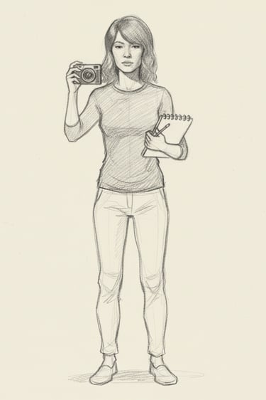 Descripción Física: Alta y atlética, cabello negro largo, siempre vestida de manera funcional para su trabajo como periodista investigativa.