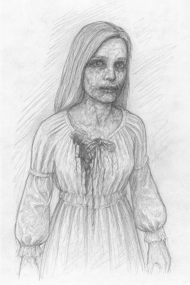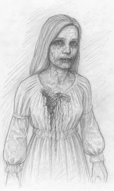 Descripción General: Bajo la influencia del demonio Zerath, la cálida enfermera que alguna vez fue el corazón de David se transforma en una presencia inquietante. Su figura sigue siendo la misma, pero su esencia está corrompida. El cabello castaño que antes reflejaba luz ahora parece deslizarse en sombras. Sus ojos verdes, antes llenos de ternura, brillan con un resplandor antinatural, como si una segunda mirada —más antigua y cruel— habitara en su interior.